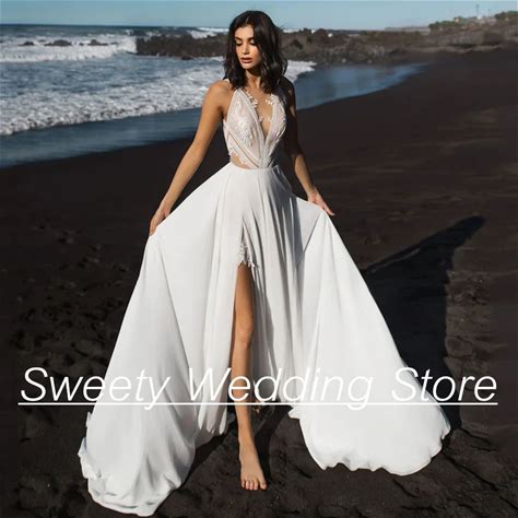 Latest Summer Boho Wedding Dresses Lace Beach Bridal Gowns 2024 Bride Dress V Neckline Wedding Gowns