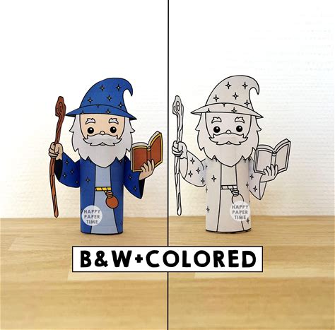 Wizard Toilet Paper Roll Craft Medieval Fantasy Party Coloring Printable Decoration Kids Play Cut Out Magic DIY - Instant Download