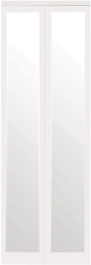 32 in. X 96 in. Mir-Mel Primed Mirror Solid Core MDF Full-Lite Interior Closet Wood Bi-Fold Door With Matching Trim