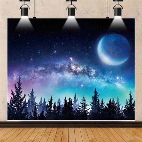 AOFOTO 10x5ft Night Sky Forest Backdrop Universe Space Nebula Galaxy Starry Sky Photo Background Northern Colorful Lights Stars And Moon Winter