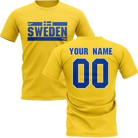 Personalised Sweden Fan Football T-Shirt (Yellow) Men's Polyester Uksoccershop